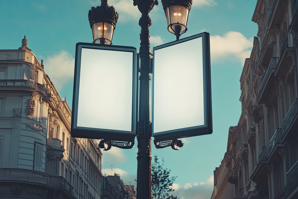 Lamp post and Mupi (Mobilier Urbain pour l’Information) advertising utilizes street furniture to display promotional materials on lamp posts and city information panels. This approach targets pedestrians and drivers, ensuring consistent visibility in urban areas with high foot and vehicle traffic